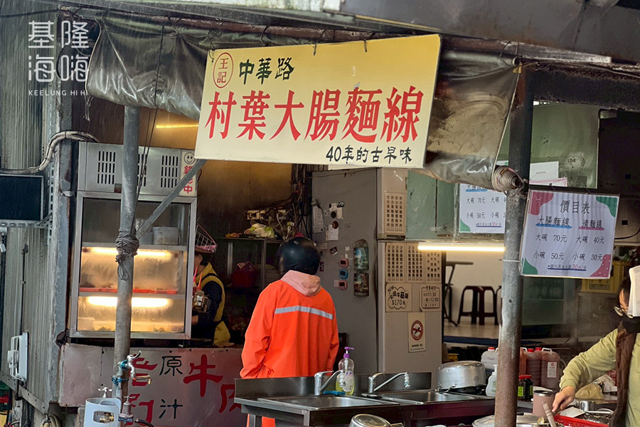 村葉大腸麵線是位在中華路傳統市場裡的一家麵線專賣店,有網友在 基隆人日常社團 分享店面與餐點照,並表示「村葉 大腸麵線」引發討論;有光顧過的網友表示,這家大腸麵線在當地經營已久,至少有40年歷史,目前已經傳承至第二代,是不少基隆人從小吃到大的老味道,喜歡吃辣的朋友可以加一點店家自製的辣醬;也有不少網友表示,每次去外帶都會特別請店家裝在塑膠袋中,回程路上咬破袋子的一角,一邊吸著吃最對味。