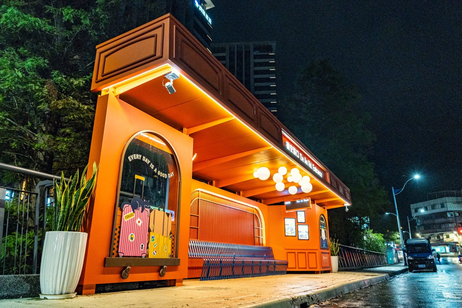 候車亭不再是冰冷的設施,德安路口候車亭以鮮明橘色作為主視覺,搭配造型前衛的立體球燈,成功為新橫濱社區一帶點亮一抹暖光,成為城市中最新穎、最受矚目的「美學候車空間」。