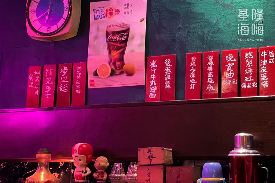 有趣的是,店家不只重現了香港的迷幻復古感,還巧妙地融入了許多台灣老件,形成一種獨特的「老基隆 + 老香港」混搭風格,讓許多網友直呼:「像是搭上時光機回到過去!」