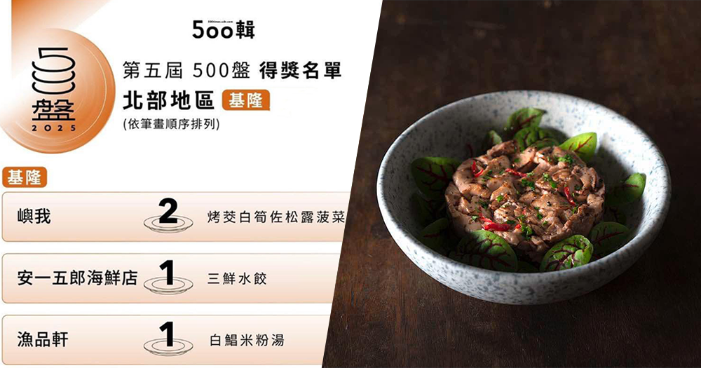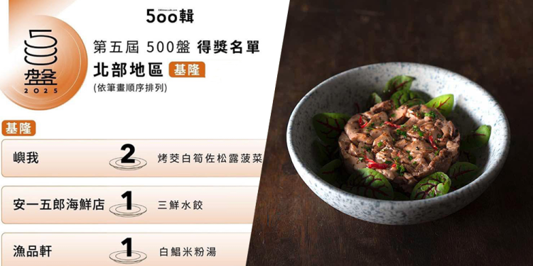 此外,基隆在今年的「500碗」小吃評選中也有亮眼表現,共有20家店家入選,其中4家更獲得雙碗殊榮。從500碗到500盤,基隆餐飲業展現出從庶民小吃到高端餐飲的全方位實力,證明這座雨港不僅有豐富的海鮮資源,更有不斷創新的餐飲文化能量。