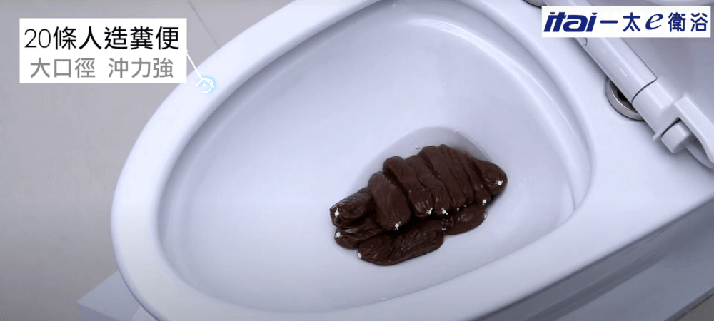 ▲經影片實測,可一次沖走20條人造糞便(圖/截至itai一太e衛浴馬桶影片)