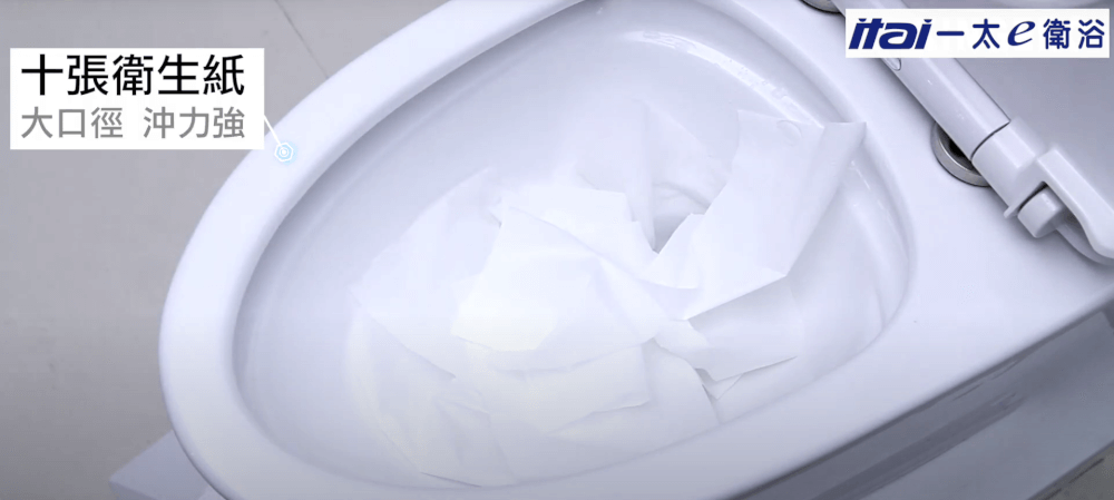 ▲經影片實測,可一次沖走10張衛生紙(圖/截至itai一太e衛浴馬桶影片)