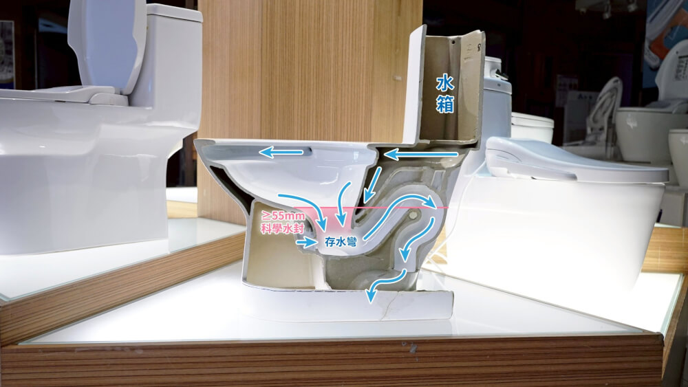 水封過高會濺水,過低則難以防臭;為確保馬桶正常運作,水封高度須保持在適當範圍 。(本圖由 itai一太e衛浴 授權刊出)