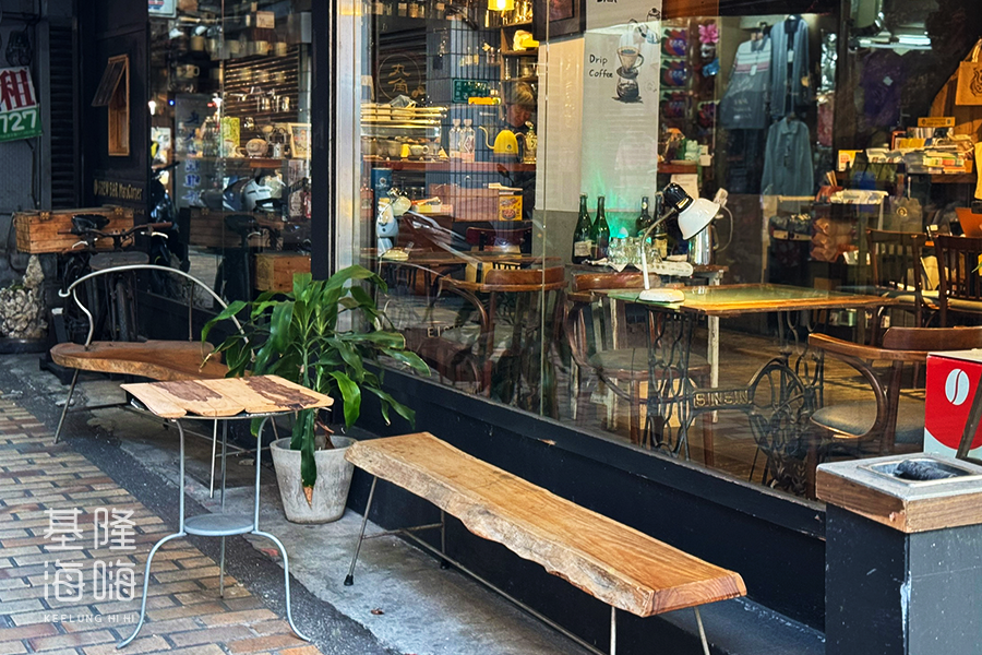 坐落於孝二路28號,少了廟口的喧囂,顯得格外靜謐。店址原為服飾店,一樓的玻璃帷幕讓陽光灑入室內,成為最柔和的照明。兩層樓的空間充滿復古老件與木質調,彷彿一個時光膠囊,默默呼應著基隆的歷史魅力。