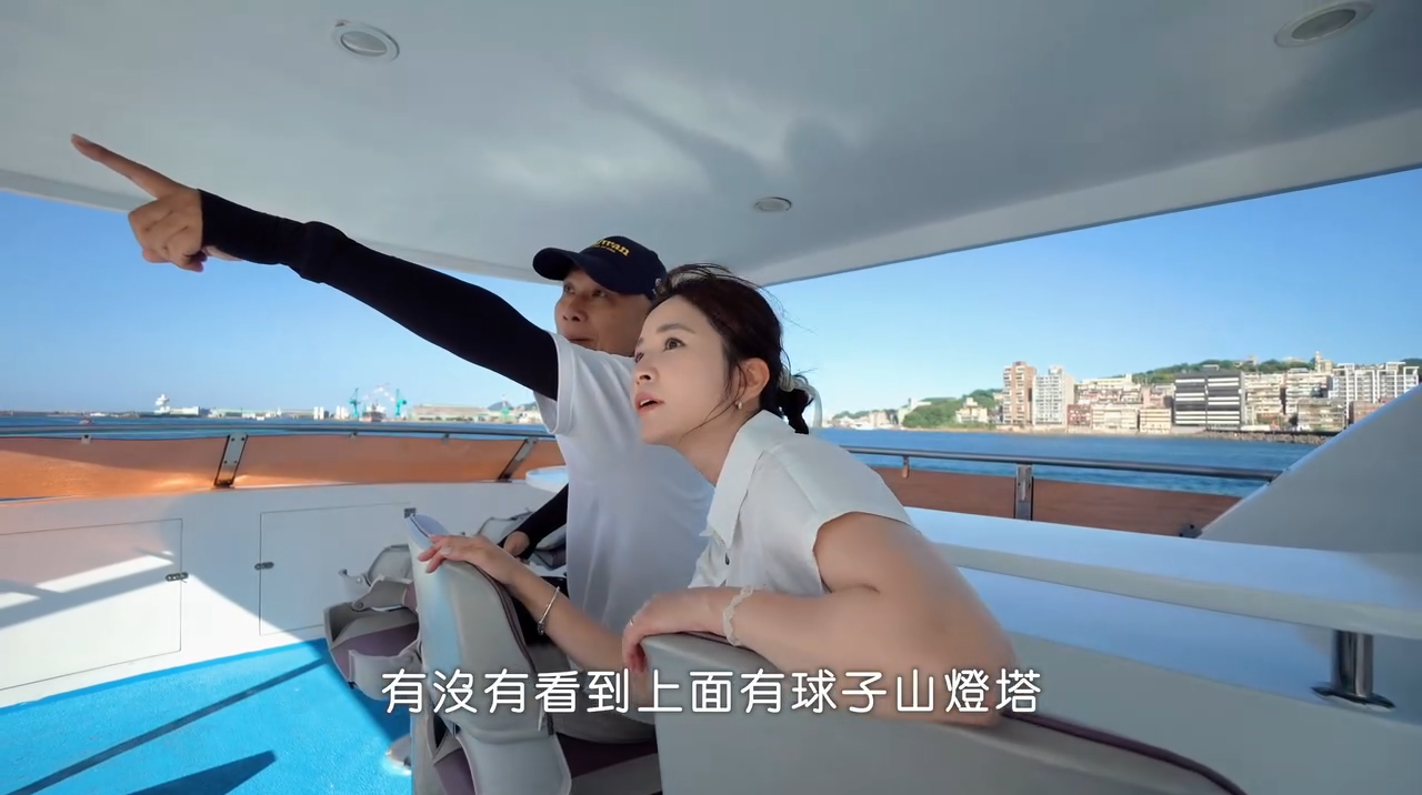 影片的開端,便是一段極具基隆特色的海上旅程。吳怡霈搭乘「綠舞1號」遊艇,從海上欣賞基隆港的壯闊景色,港邊的「KEELUNG」巨型地標、林立的貨櫃起重機,以及遠處的球子山燈塔,共同勾勒出港都獨有的風景線。