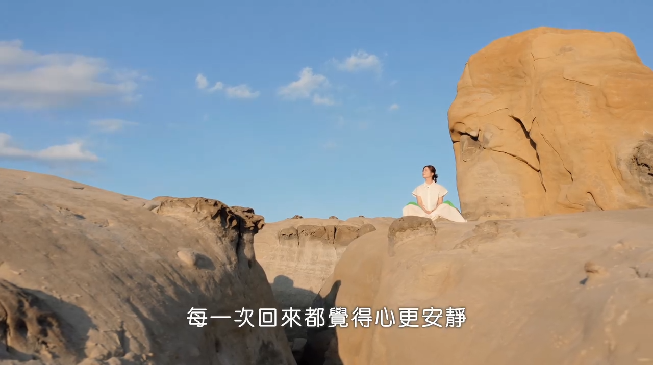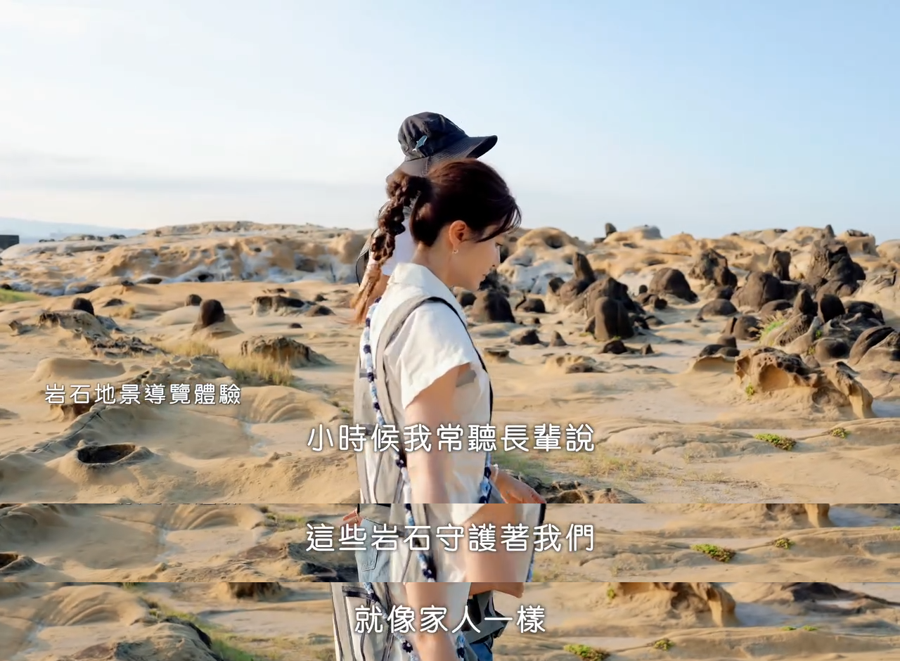 在著名的蕈狀岩地景中,她與友人進行了一場「岩石地景導覽體驗」。她分享了小時候長輩的教誨:「這些岩石守護著我們,就像家人一樣。」讓硬朗的地質景觀,多了一層溫柔的守護意涵。