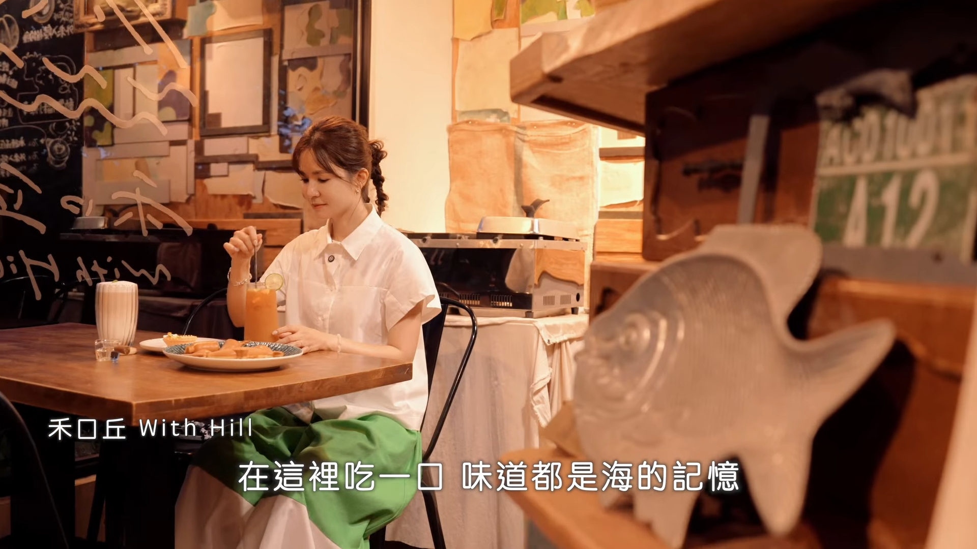在名為「禾口丘 With Hill」的咖啡店裡,她品嚐了充滿海味記憶的在地美食。