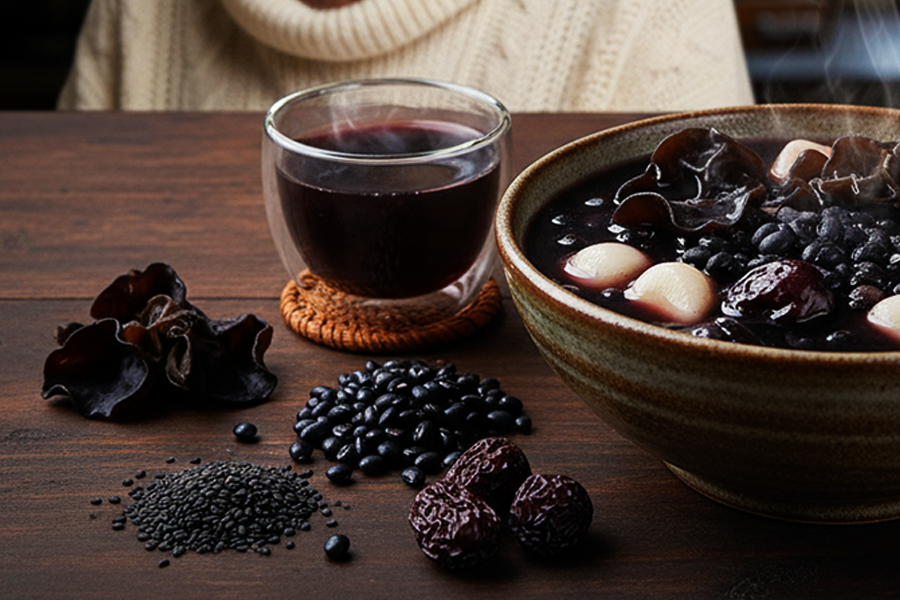 - 推薦食材: 黑豆(補腎益脾)、黑芝麻(潤腸滋陰)、黑木耳(活血益胃)、黑棗(補氣養血)。