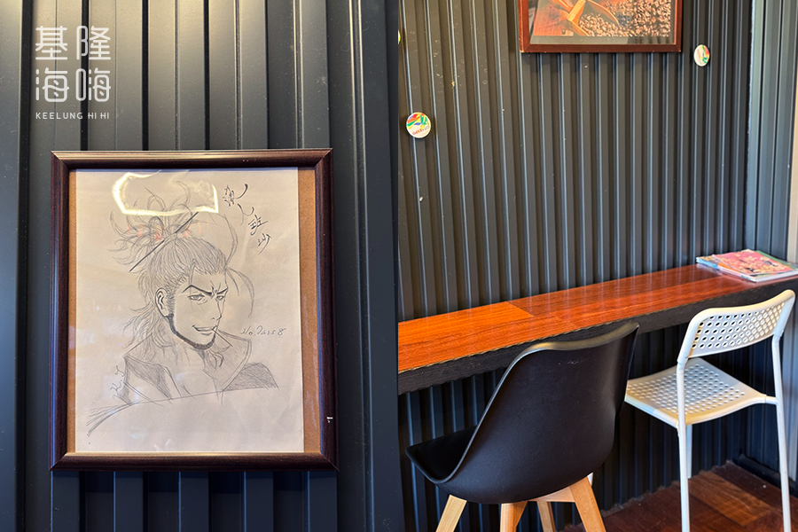 除了自烘咖啡的專業性,店內另一大亮點就是牆上那些老闆親手繪製的咖啡豆擬人肖像畫,旁邊還標註豆子名稱,讓藝術跟咖啡產生了有趣的連結。