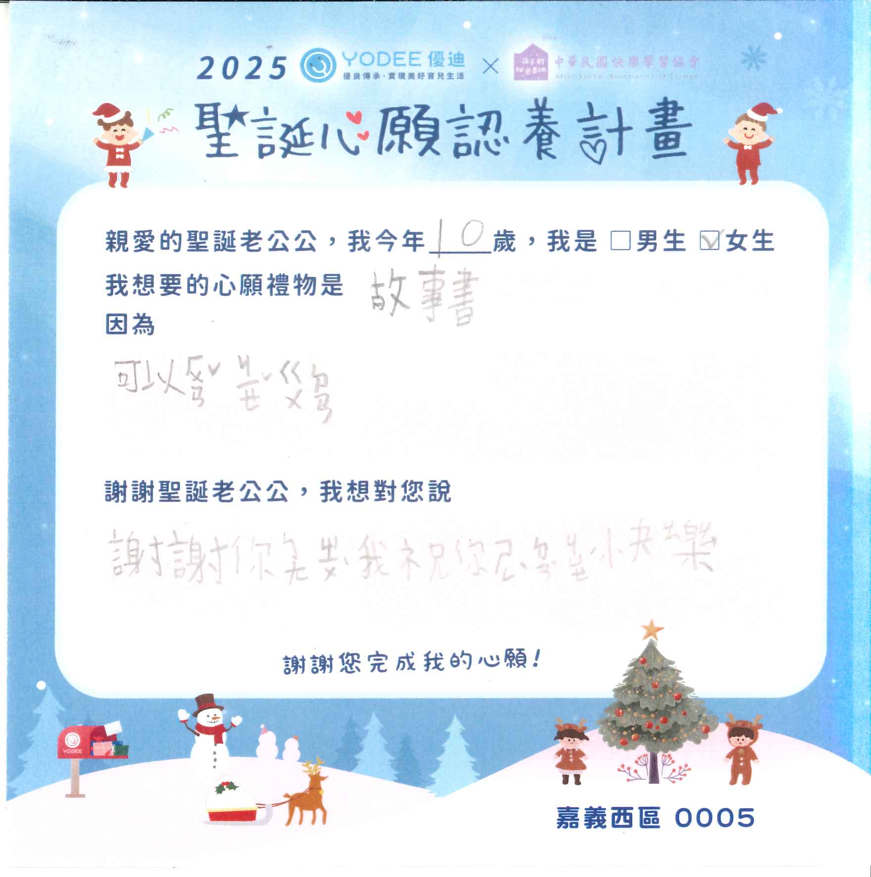 為讓更多孩子在節日裡感受到愛與被關懷的力量,YODEE優迪與快樂學習協會攜手發起「聖誕心願認養計畫」。