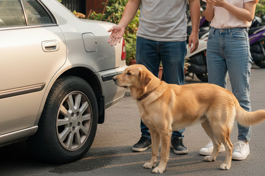 飼主應負起善後責任,這是避免糾紛和損害的關鍵。最基本且有效的方法是「隨手沖水」。遛狗時應隨身攜帶裝有清水的寶特瓶,一旦狗狗在他人車輛輪胎、鐵門或公共設施上排泄,應立即用大量清水沖洗稀釋,以降低尿液的酸性腐蝕風險和異味。