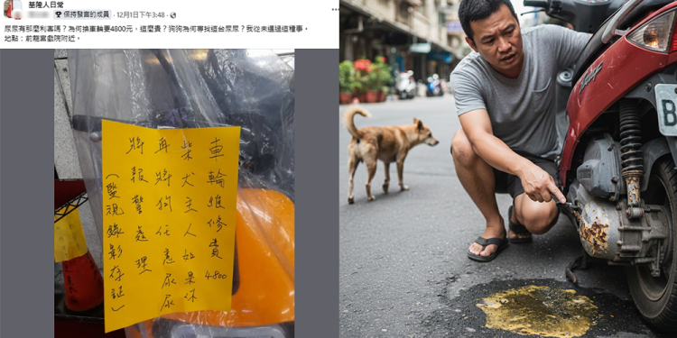 狗狗尿輪胎上,真的會造成嚴重損害嗎?近日有民眾在臉書社團「基隆人日常」發文,表示在前龍宮戲院附近,得知有車主因輪胎遭狗尿襲擊,向飼主索賠4800元更換費用。原PO身為路人旁觀者,對於這個金額感到相當驚訝,忍不住發文詢問:「尿尿有那麼厲害嗎?」、「為何換車輪要4800元這麼貴?我從未遇過這種事。」沒想到這篇充滿疑惑的貼文,意外釣出大批苦主與內行網友,揭露狗尿不為人知的「超強破壞力」。