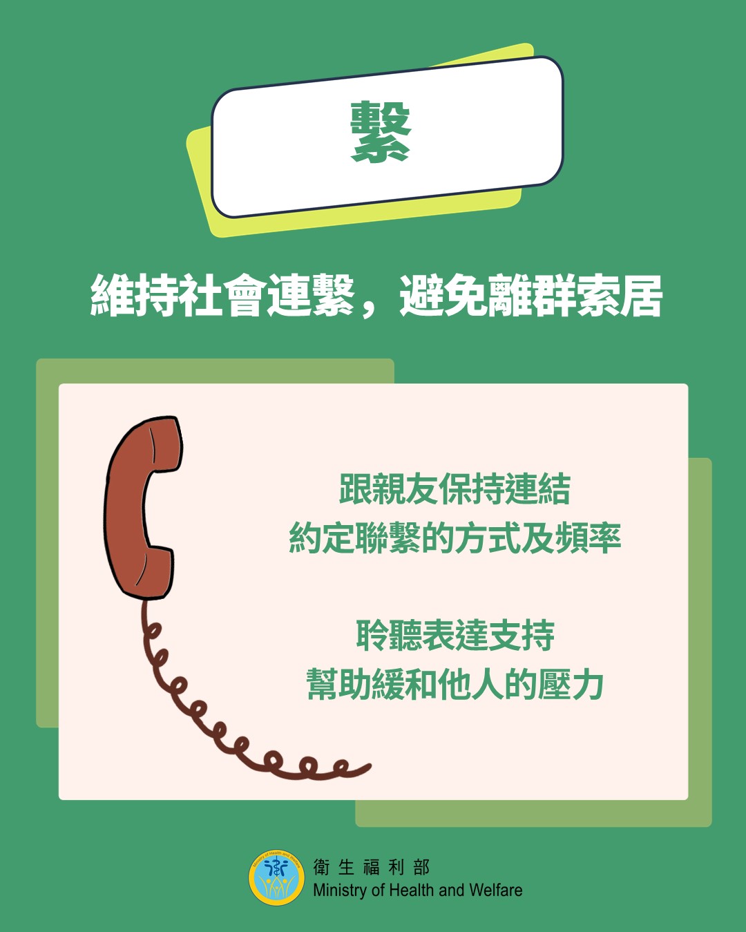 不要獨自承擔恐懼。找親近的家人或朋友聊聊天,互相傾訴感受、彼此陪伴。人與人之間的連結,是緩解壓力、排解孤獨感最有效的方法之一。