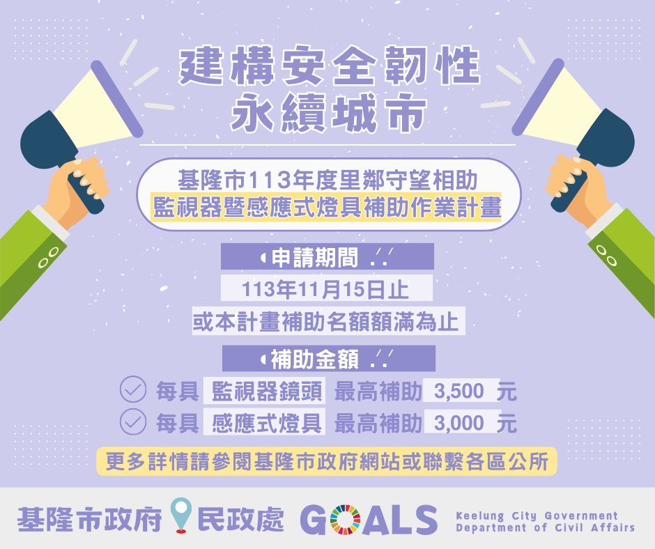 此外,為了讓市民住得更安心,未來安裝里鄰監視器、瓦斯安全裝置甚至老屋修繕,市府通通都有補助規劃。想知道哪些新制與荷包有關?《基隆海嗨編輯室》特別整理了以下重點,帶您一次掌握。
