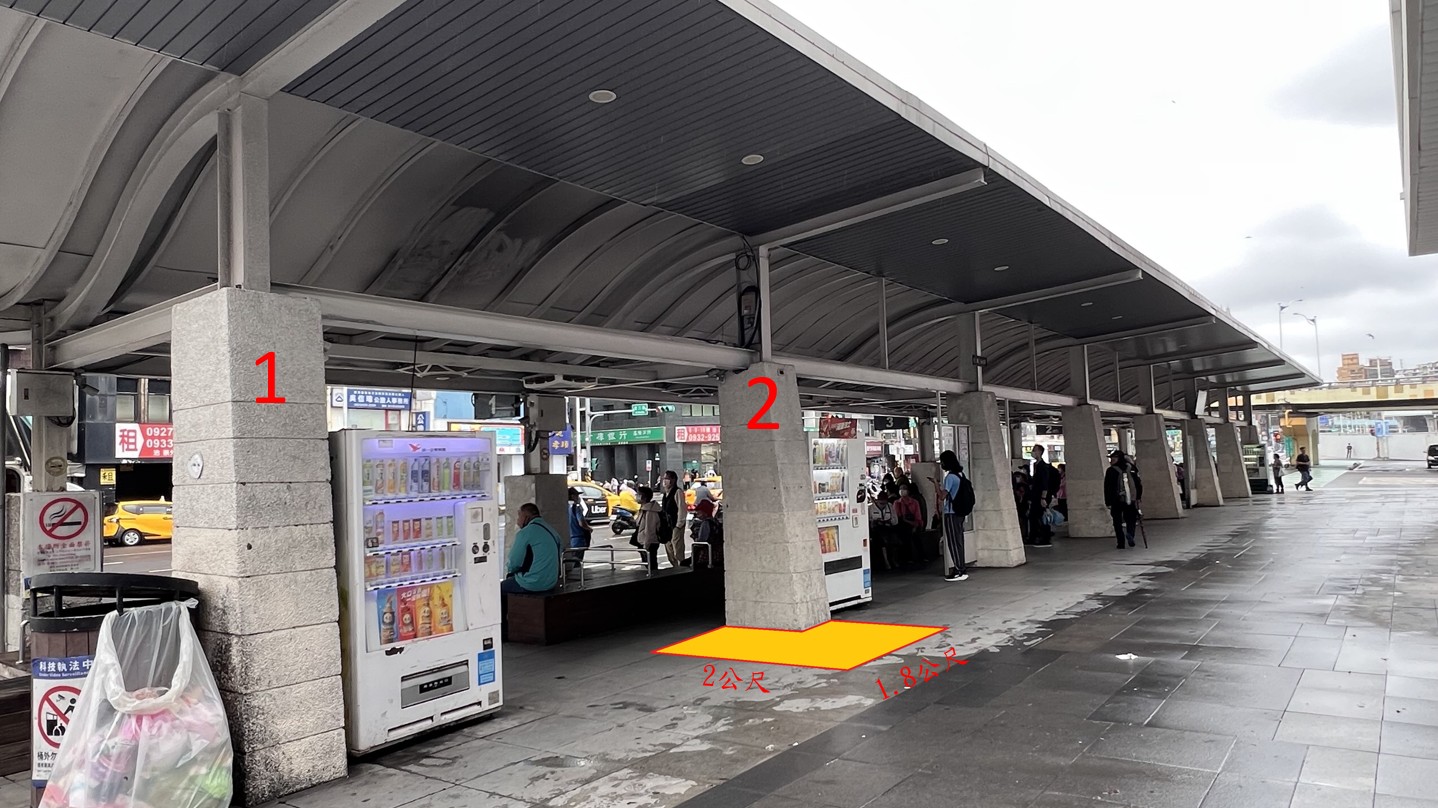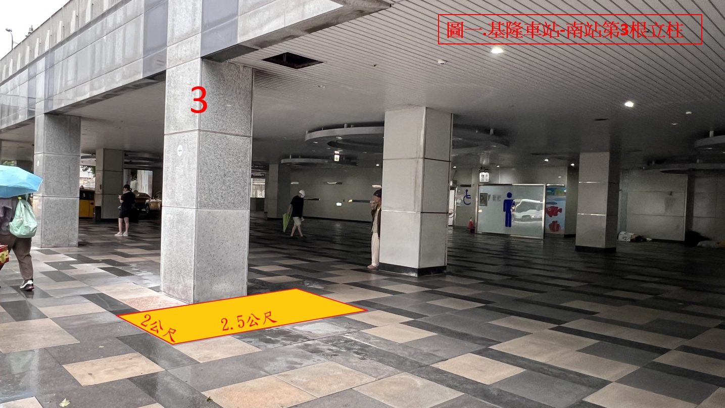- 基隆火車站(二): 南站一樓電梯右側前排第3根立柱(2m × 2.5m)