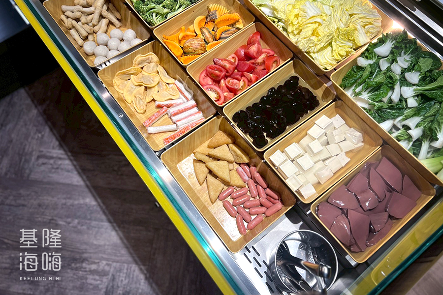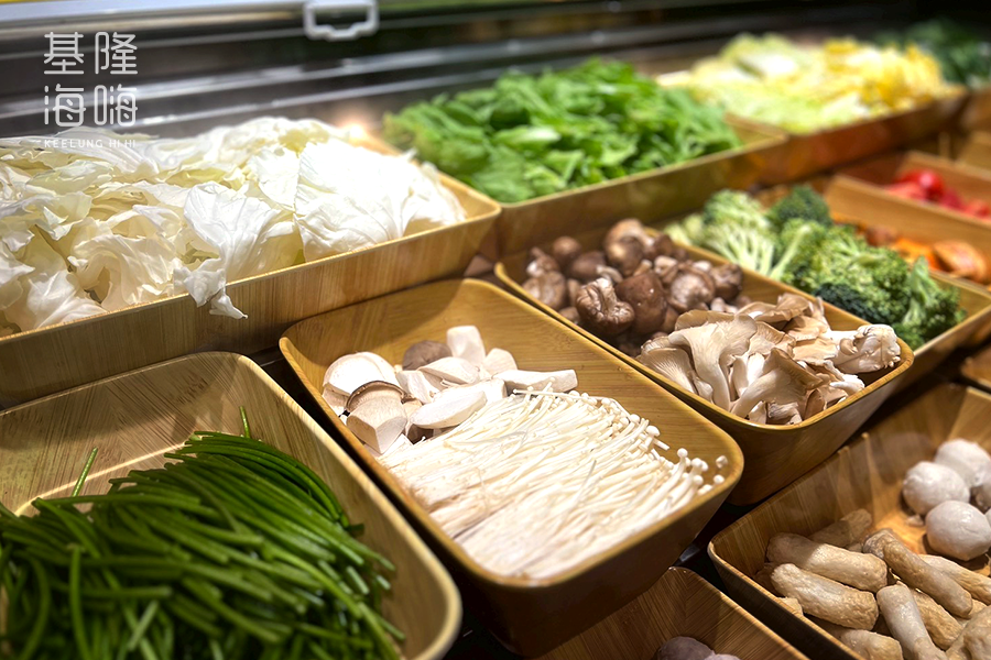 自助吧規劃數十種品項,涵蓋時蔬、火鍋料、十六種蔬食、十二種淋醬,以及咖啡、甜湯、冰淇淋等。
