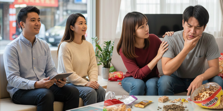 張殷仁院長解釋,許多人在過年期間挑戰牛軋糖、瓜子等硬物,起初可能只覺得牙齒酸軟,沒想到裂痕隨後擴大才驚覺大事不妙。另一類則是俗稱的「火氣大」,其實是作息混亂加上高糖飲食,導致免疫力下降,讓潛藏的牙周病菌伺機爆發,造成牙齦腫脹甚至化膿。
