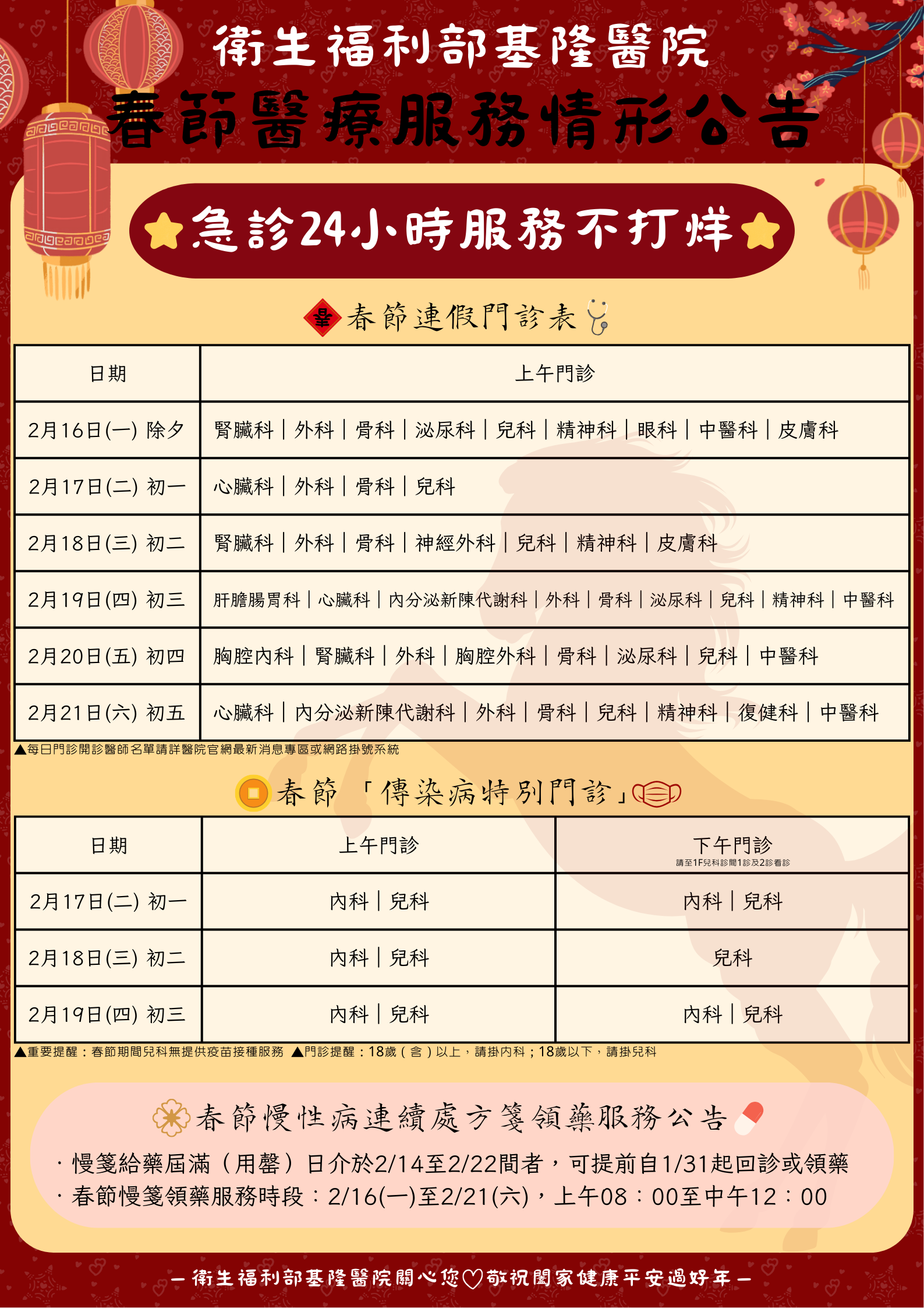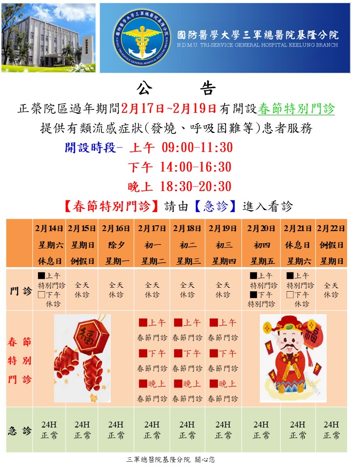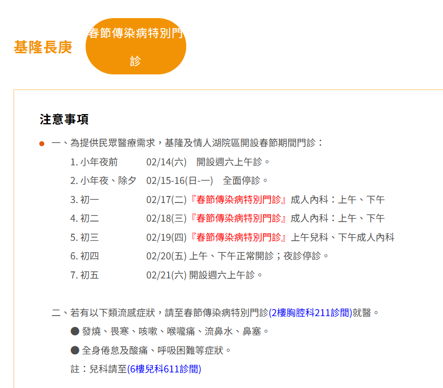基隆春節連假醫療不打烊