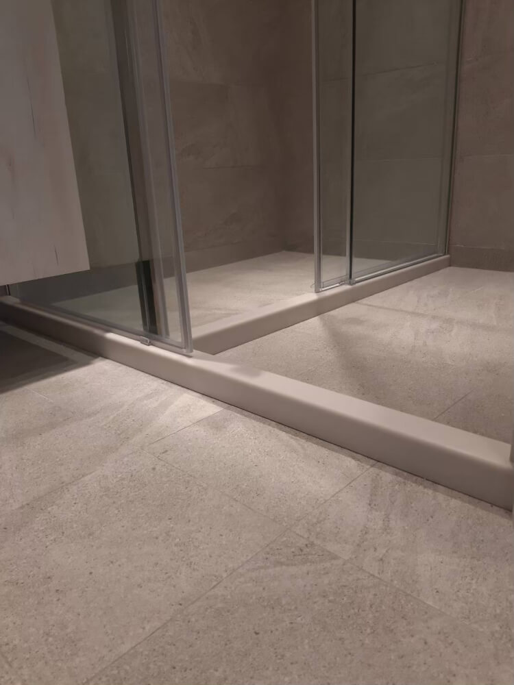 除了斷面造型,門檻的整體配置必須配合拉門形式,才能確保淋浴間嚴絲合縫: