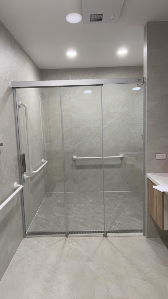 值得一提的是,像一太e衛浴這類深耕淋浴拉門領域的品牌,也有推出無障礙淋浴拉門的款式,可搭配降板或集水槽設計使用,讓無門檻浴室的規劃更加完整。