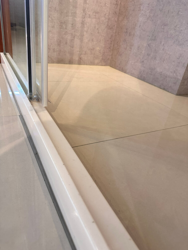 門檻提供了平整且穩定的支撐面,讓拉門下軌道能夠確實固定,開關門才會順暢,整體密合度也會更好。簡單來說,門檻就是整個乾濕分離系統的地基,地基沒打好,上面裝再貴的拉門都是白搭。
