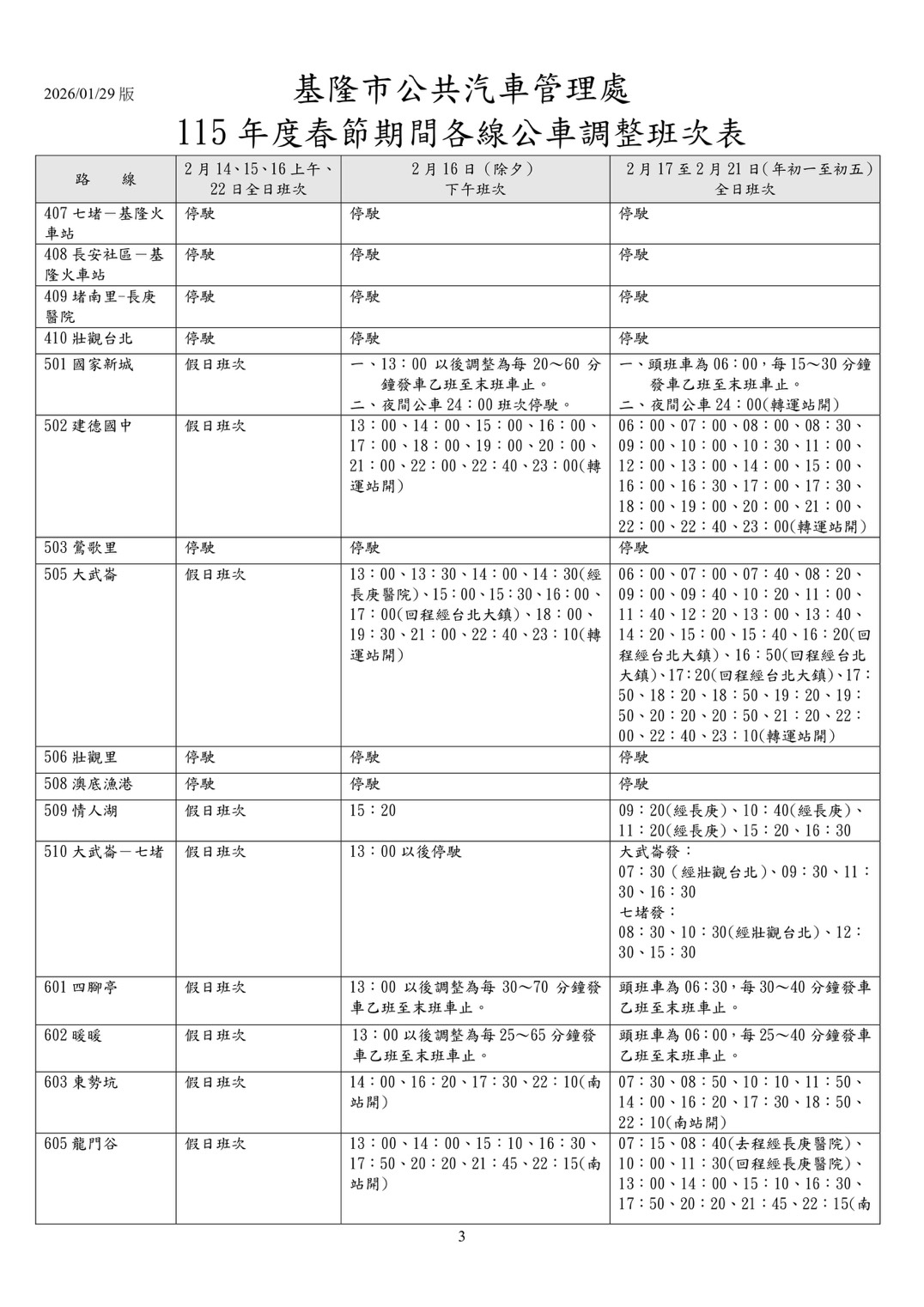 2026年基隆春節公車在除夕當天有開嗎?