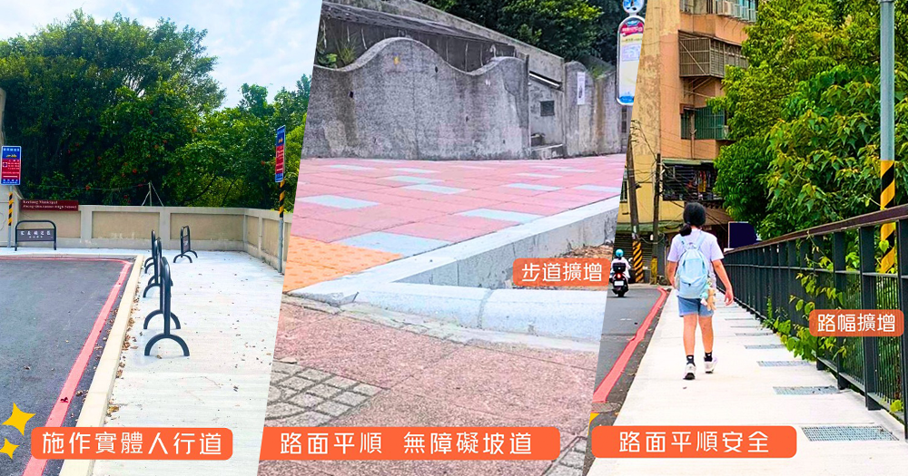 1. 人行道串聯: 銜接原本斷斷續續的步道,讓動線一氣呵成。