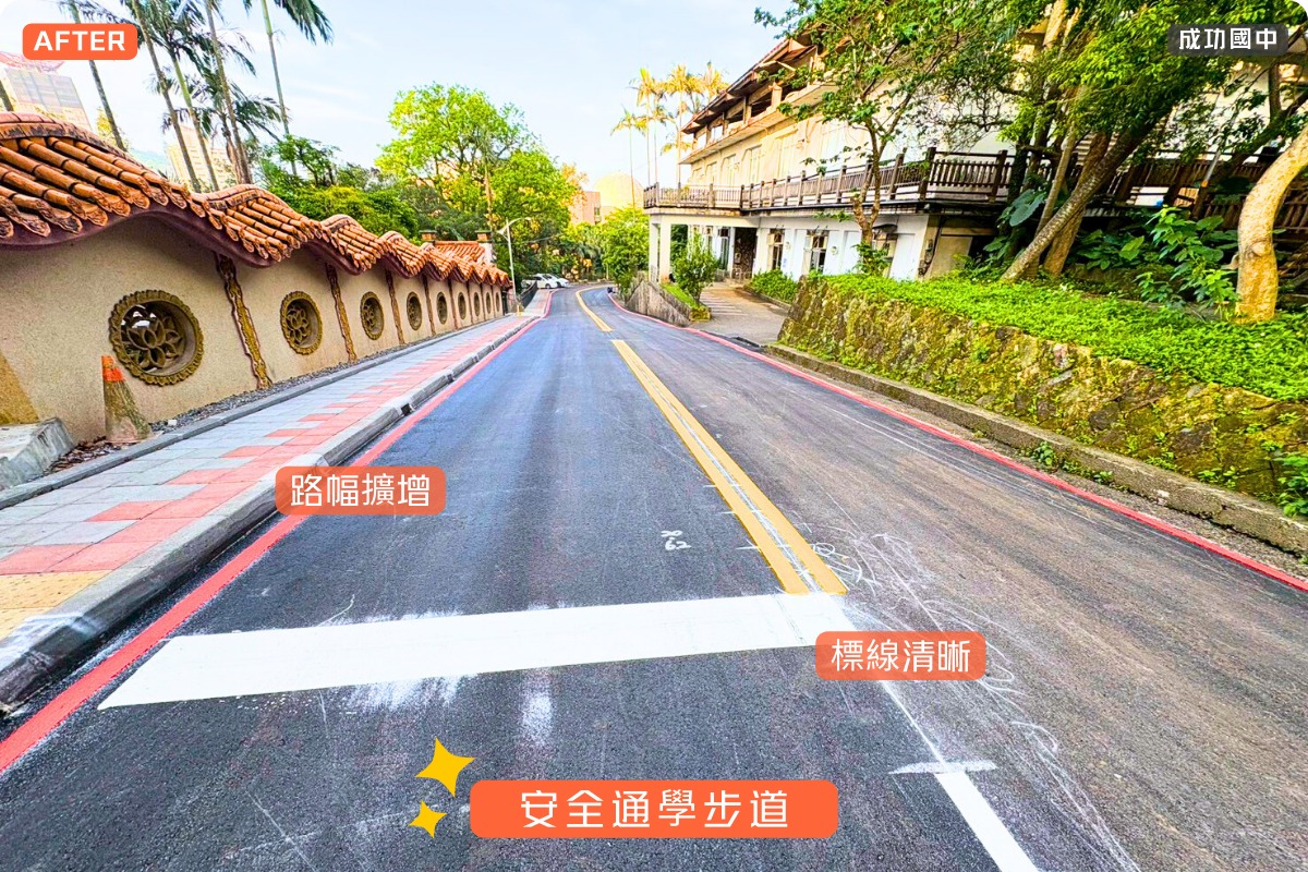 為了讓家長放心地讓孩子走路上學,本次改善工程並非只是「重新鋪路」,而是透過專業規劃納入多項安全措施: