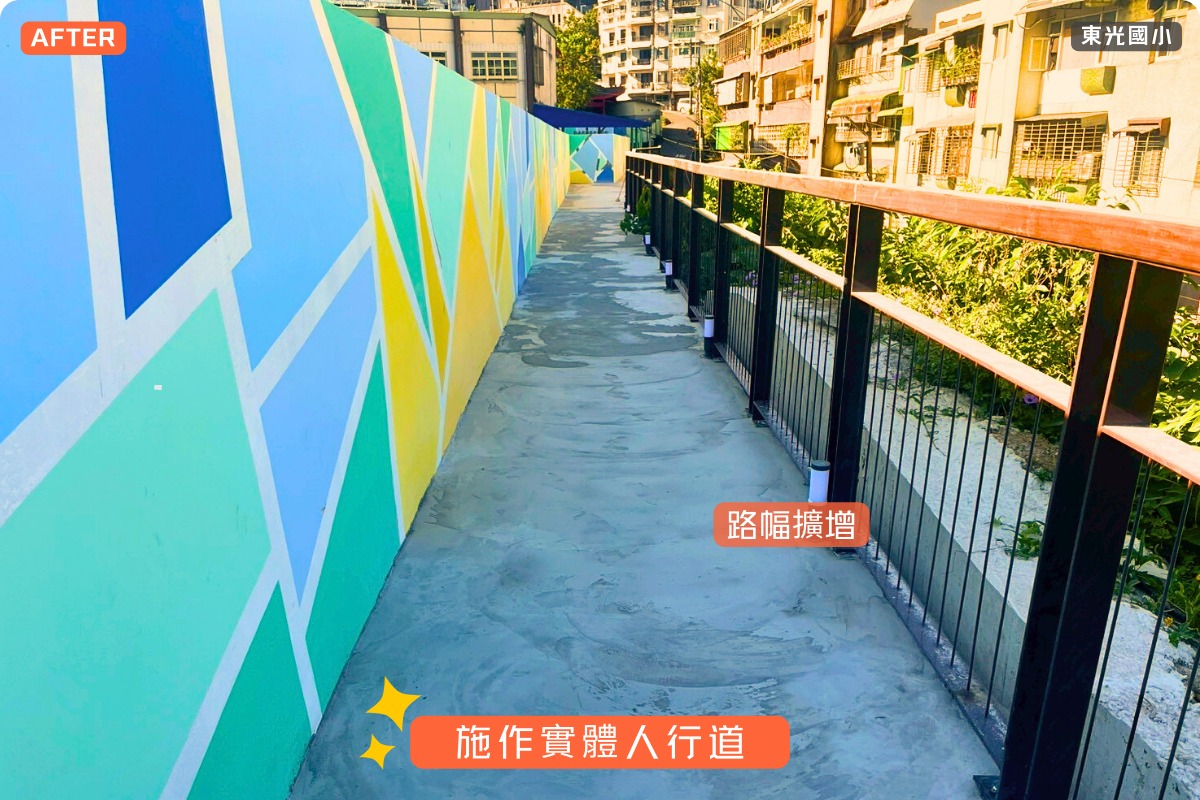 ▲東信國小拆除天橋後增設寬敞人行道(圖/基隆市政府教育處)