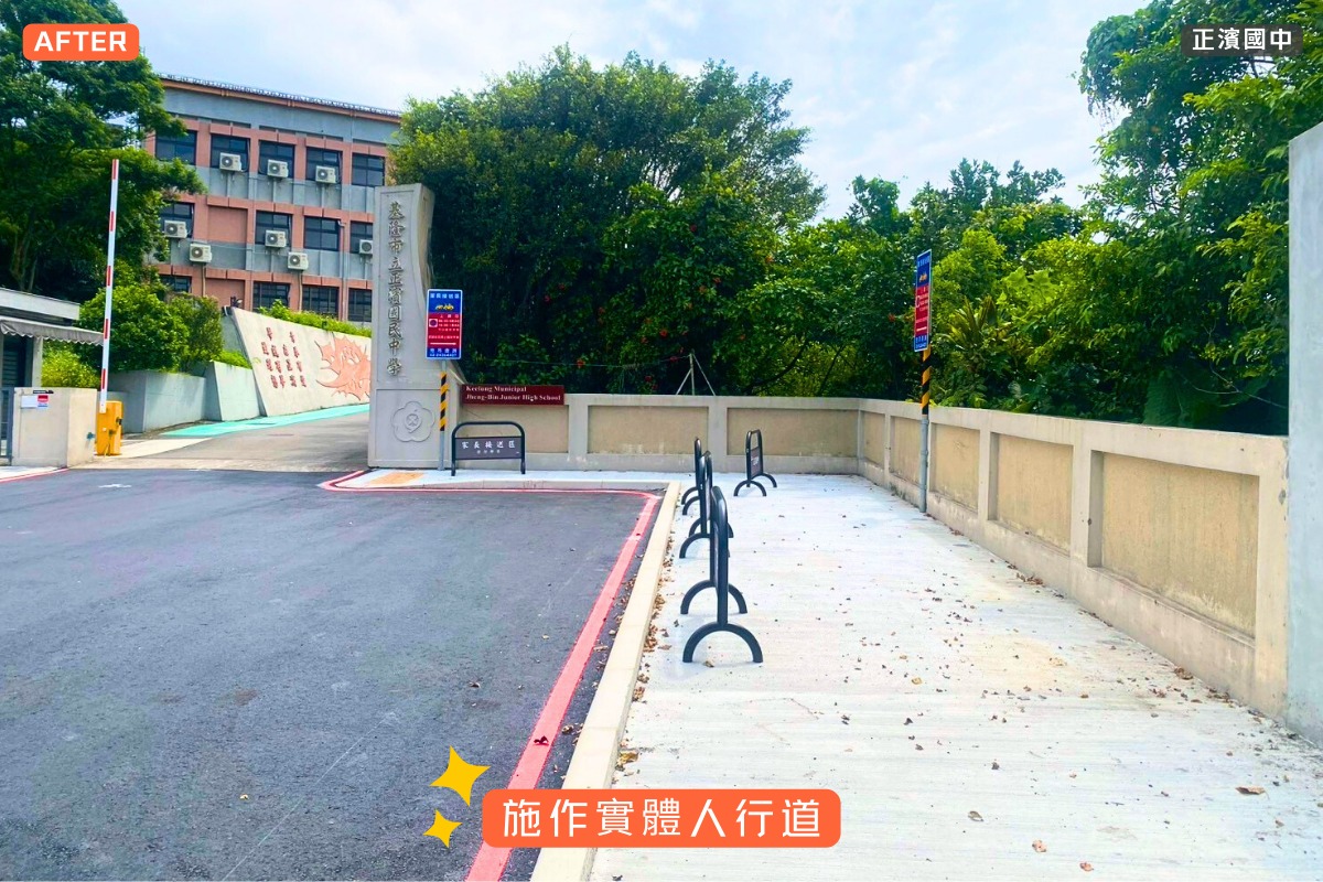 ▲正濱國中增設寬敞人行道(圖/基隆市政府教育處)