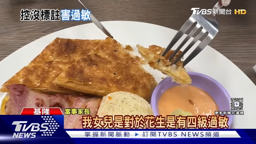 基隆一名小一女童日前隨母親到住家附近早餐店用餐,吃了含有花生醬的燒餅後,不到3分鐘臉部嚴重紅腫、嘴唇腫脹外翻,緊急送醫治療。據TVBS報導,家長事後對店家提告過失傷害並附帶民事賠償,早餐店業者則喊冤表示事前完全不知道女童對花生過敏,雙方各執一詞,全案已進入司法程序。