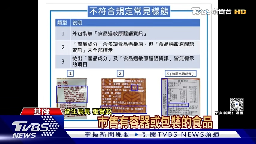 吳律師指出,依據我國食品衛生相關法規規定,目前有11大類食品過敏原需要在食品或食品容器包裝上特別標註,「其中包含花生及其製品,還有牛奶、蛋、芝麻、魚類等等都屬於過敏原需要標註的」。吳律師表示,「店家若有販賣此類商品,都需要特別註明這些過敏原。」