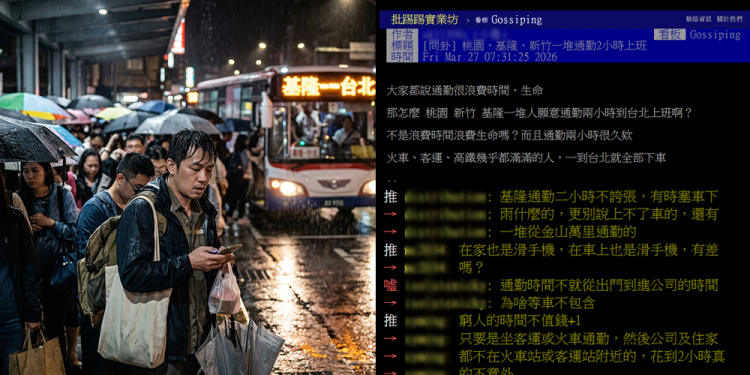 「基隆到台北哪要兩小時?」、「我家旁邊就是快速道路,20多分鐘就到內湖。」一篇PTT「Gossiping」版問卦文才剛丟出「通勤兩小時不是浪費生命嗎?」,基隆人就大舉湧入打臉。但另一派馬上反擊:「搭客運從排隊到上車25分鐘是常態,沒等兩三班車根本上不去。」