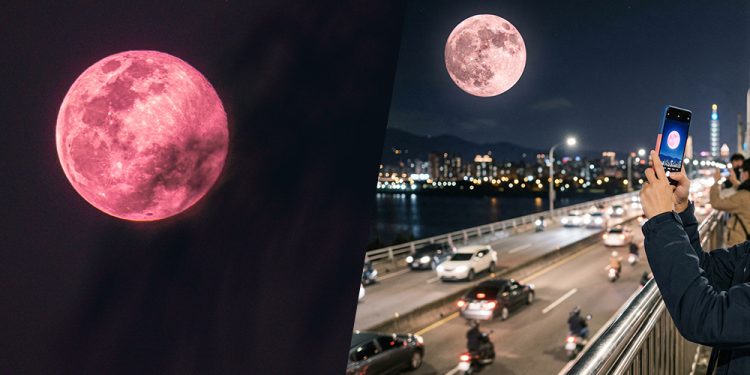 2026「粉紅月亮」4/2登場!全台5大城市「月出時刻」公開,手機拍月3步驟不變白球