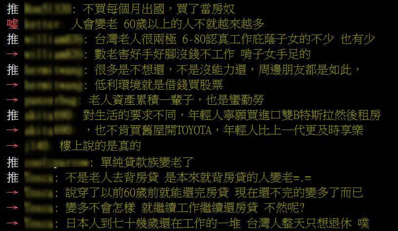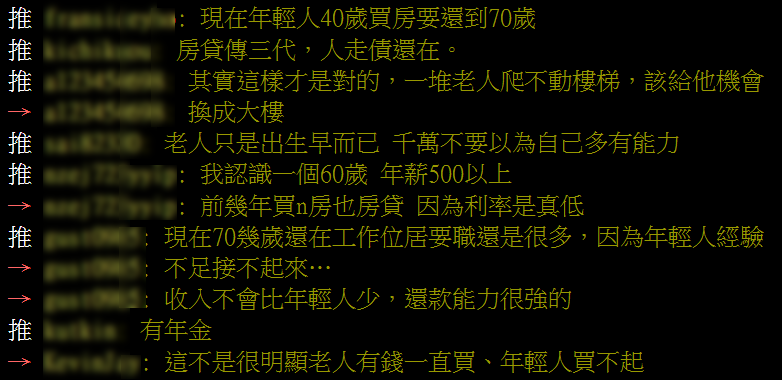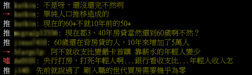 多位鄉民直接點出:「現在的60歲以上,不就是10年前的50歲以上嗎?」60歲以上房貸族增加5萬人,根本不是「老人跑去借房貸」,而是原本就在還房貸的人變老了。