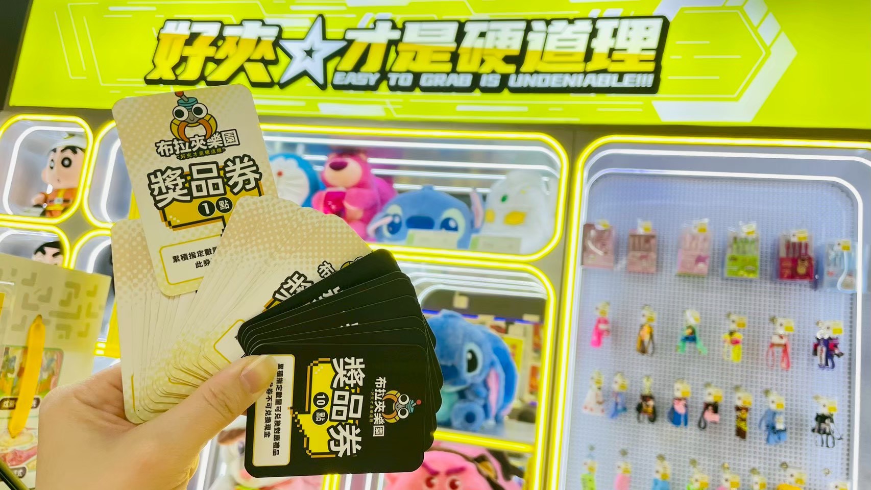與一般當次結算的遊樂場不同,布拉夾主打加入會員後,夾到的物品可以不帶走,直接存成點數,且「跨次累積、沒有期限」。孩子們不僅能享受遊戲過程,還能設定目標,將點數存起來兌換LABUBU盲盒、大型絨毛娃娃,甚至是 3C家電。