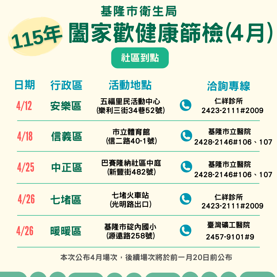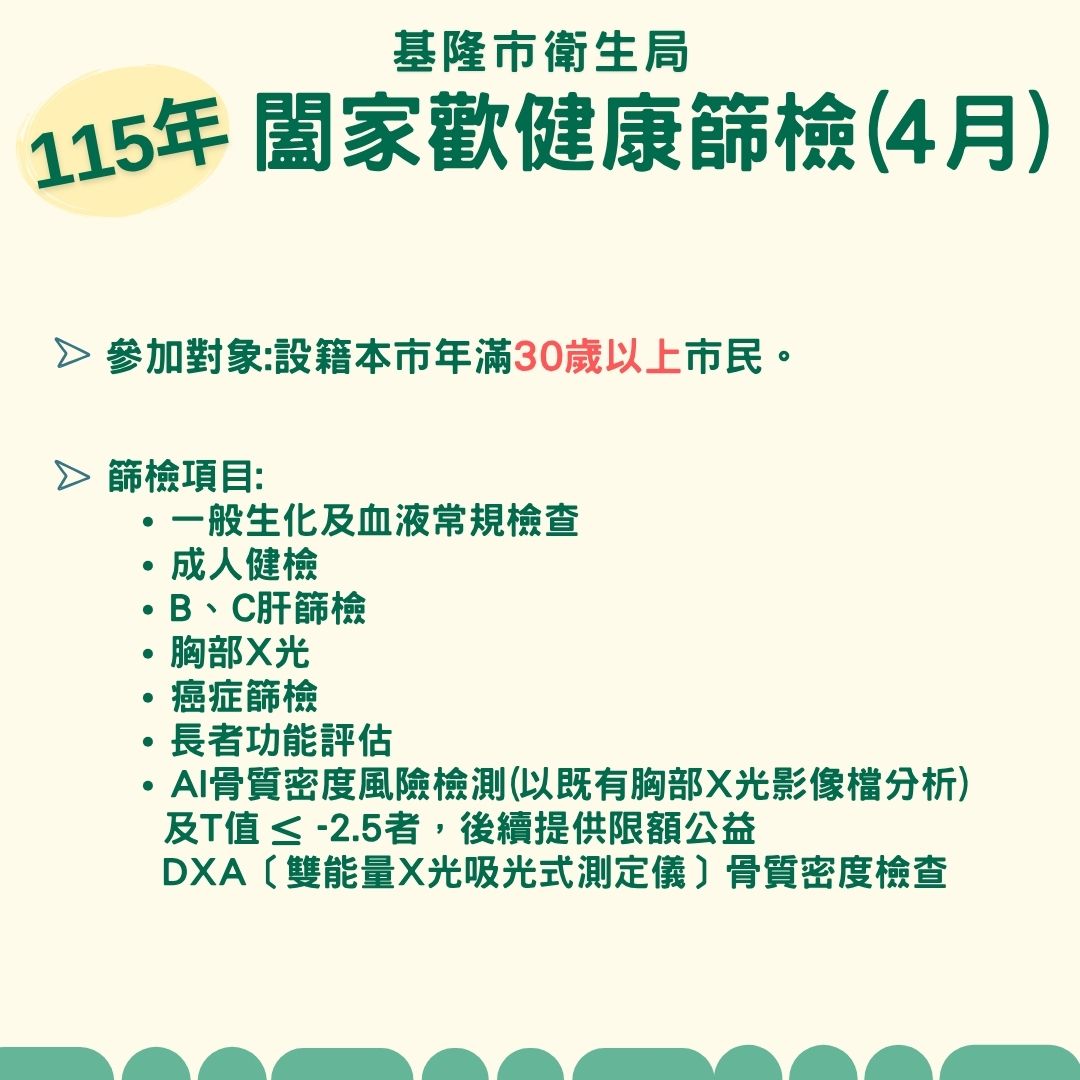 115年基隆闔家歡健康篩檢