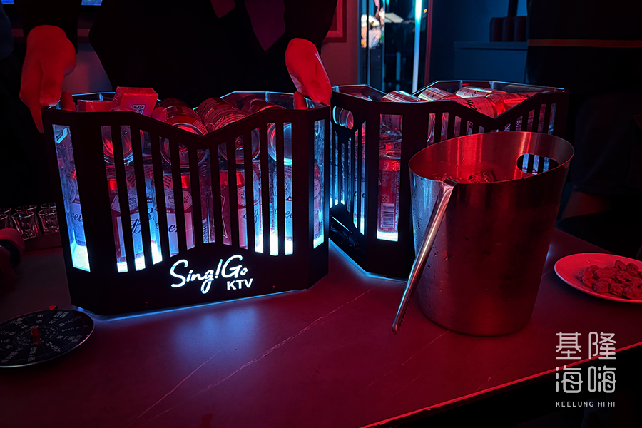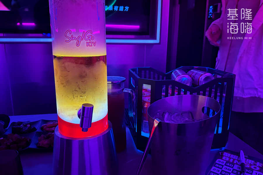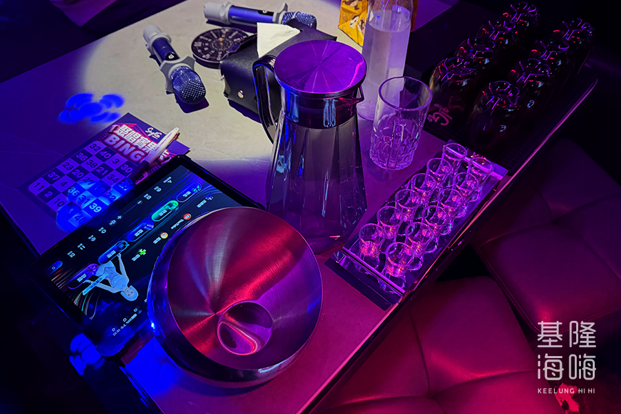 不過,這裡的娛樂與互動性極高。包廂內備有遊戲轉盤、多組骰盅與 Shot 杯,明顯是為了聚會熱場而設計。業者也結合了數位行銷,提供賓果卡並引導客人加入 LINE 帳號,透過定時發送的抽號影片進行互動抽獎,為單純的唱歌行程增添了不少額外的趣味。