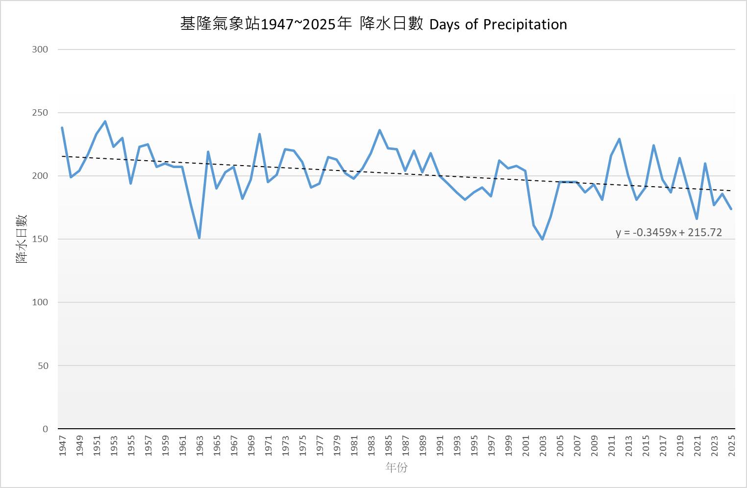 基隆氣象站80年數據證實:百年雨日縮減33天