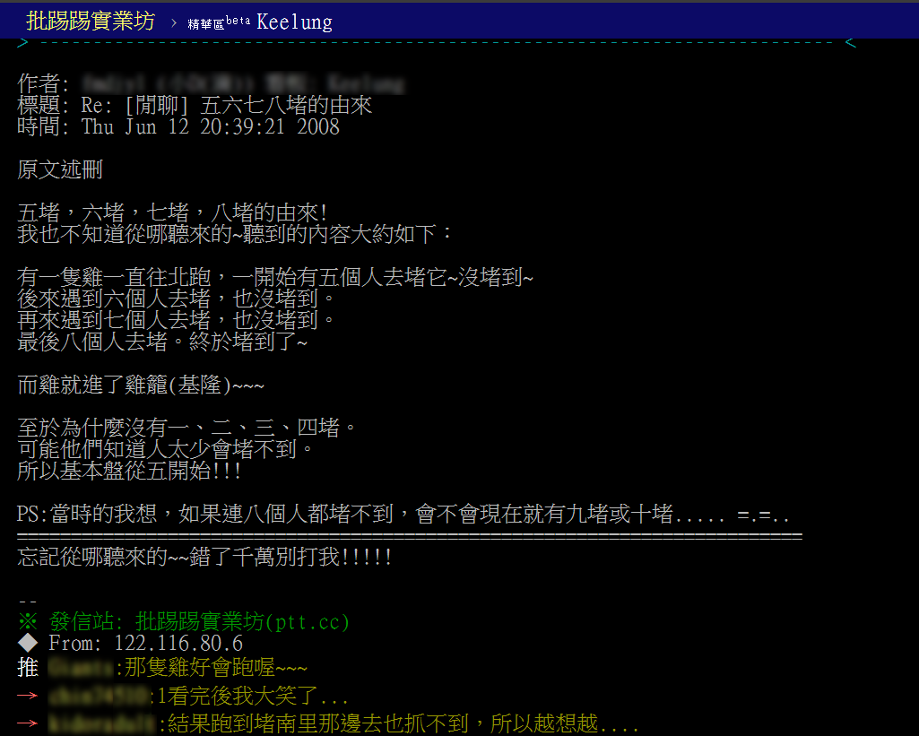 Tags: PTT基隆版一到四堵七堵五堵八堵六堵基隆冷知識基隆地名基隆河陸傳傑
